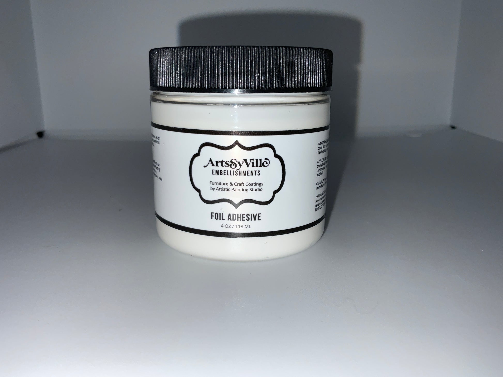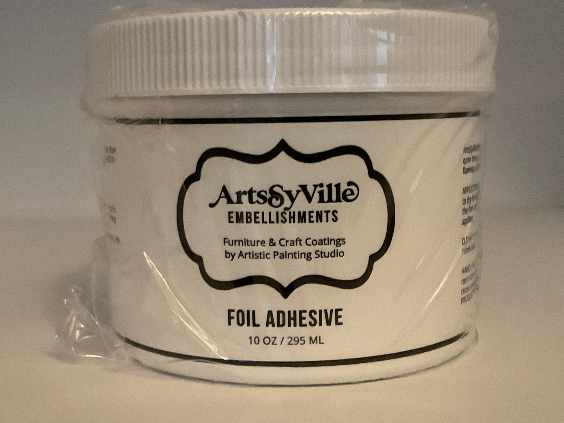 ArtsSyVille Embellishments Foil Adhesive is a water-based medium with a long open time to be used with foil and leafing projects. Once applied it provides a flawless tack surface for easy application of foils and metallic leafing.